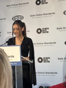 Following an energizing opening from mental health advocate, MHC Founder, and fashion designer Kenneth Cole, Senator Warner of Virginia took the stage. He spoke to the importance of passing federal legislation to support efforts like S.O.S. and emphasized the vital need to work in tandem with the tech industry. He graciously thanked Meta, Snap, and TikTok, while extending an open invitation to all other tech companies to begin the S.O.S. rating process. Senator Warner was followed by Senator Moreno of Ohio, who doubled down on the importance of working across the aisle to pass common-sense legislation, stating: “This isn’t about Democrat or Republican, it’s about keeping kids safe online.” This bipartisan showing of support for protecting youth mental health online demonstrates the collective need to work together to create systems-level change.