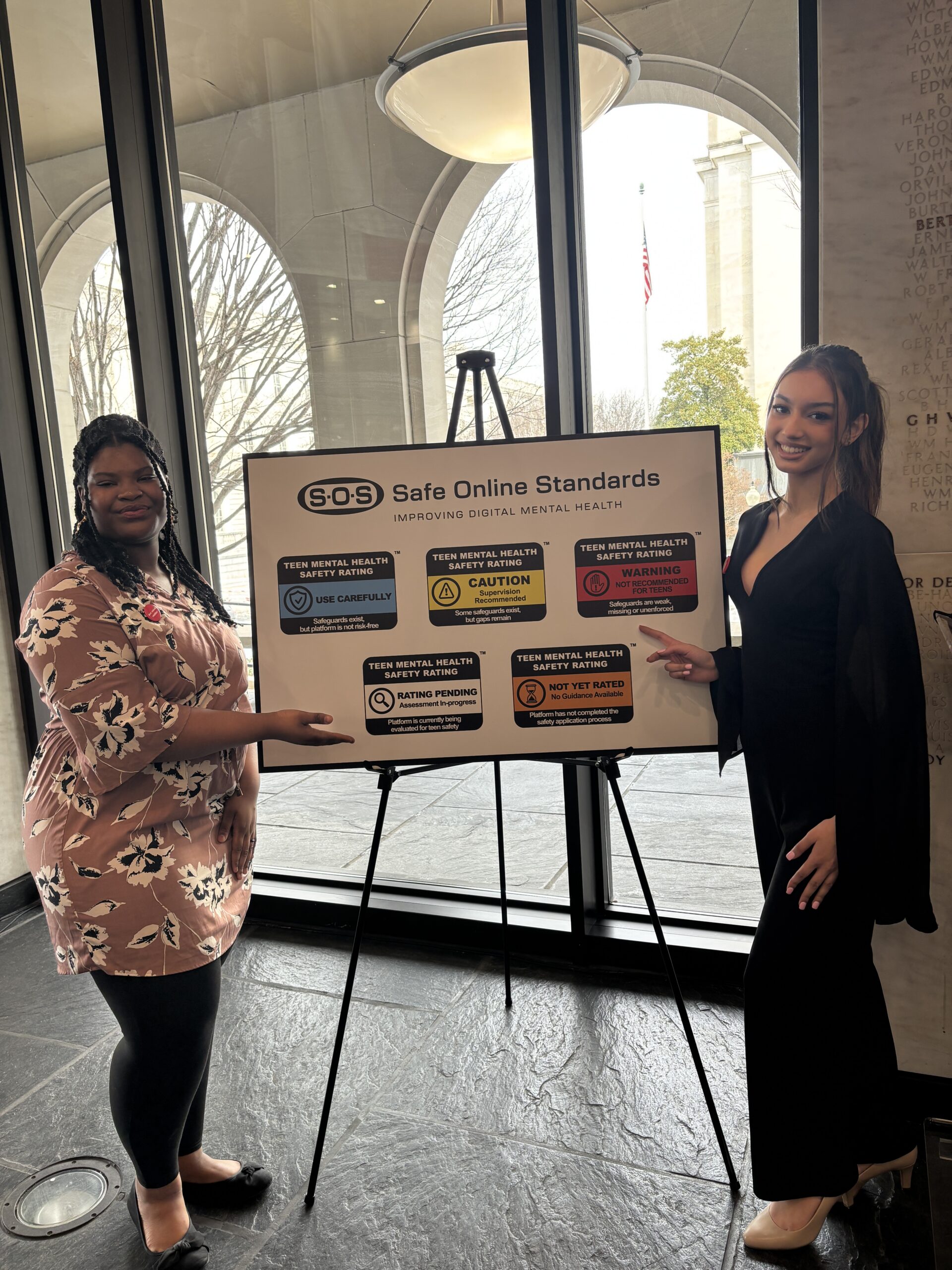 On Tuesday, February 10th, Our Minds Matter (OMM) teen leaders Jasmin Goodwin (School Without Walls, ‘25) and Abhisneha Jones (Northwest High School, ‘26) stood on Capitol Hill to launch the Safe Online Standards (S.O.S.). Speaking alongside Kenneth Cole, U.S. Senators Warner and Moreno, and representatives from TikTok, Meta, and Snap, they marked a monumental collaboration between mental health advocates, tech companies, and elected officials.